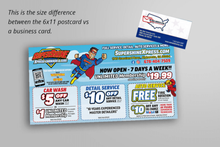 Our 6″ x 11″ postcards are the perfect blend of portability and visibility. Whether you’re looking to send the perfect message to customers around your business or reach out to a potential prospects, our 6 X 11 postcards are sure to make an impact. Not only that, but these postcards are also one of our customers’ favorites. So if you want to promote your business in a big way at an affordable price, look no further than our trusted 6 x 11 postcard.